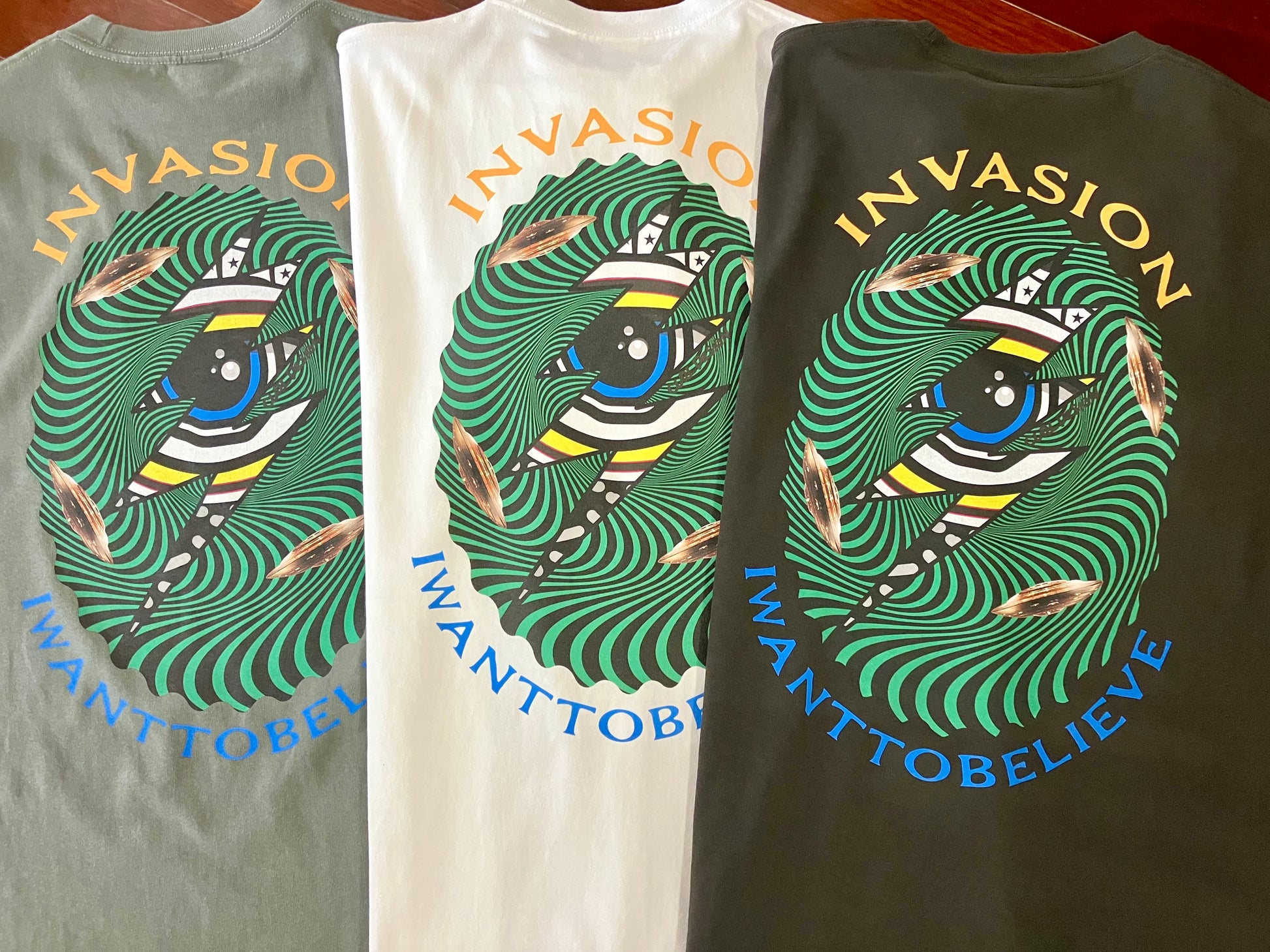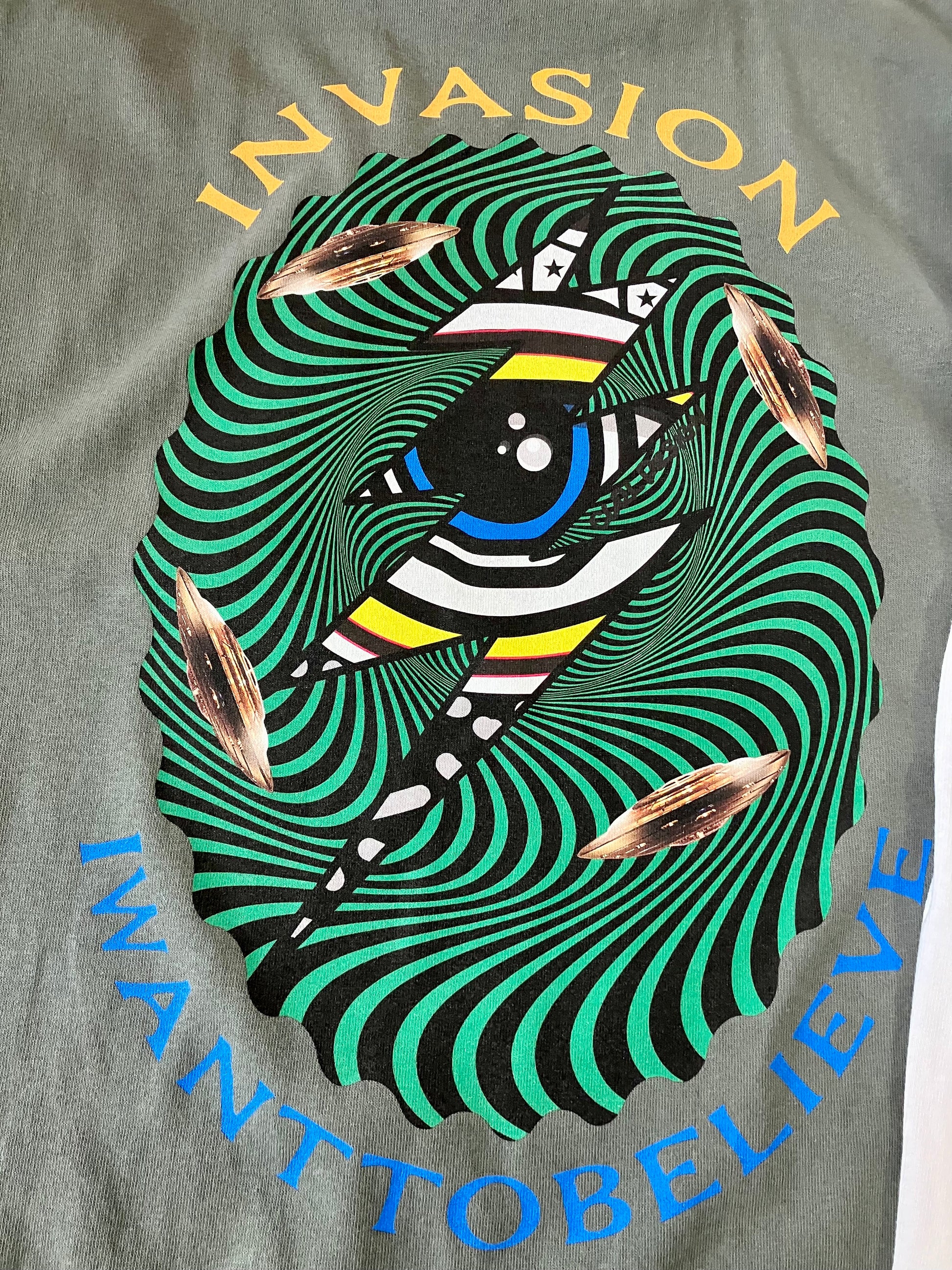 【予約商品:10月中旬以降お届け予定】INVASION Eye TEE STONE GREEN